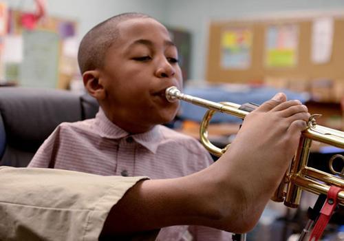 Jahmir Wallace nasceu sem os membros superiores. Aos 10 anos de idade, ele começou a tocar trompete, usando para isso seus pés.