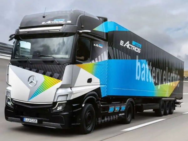 Em comparação, o e-Actros disponível hoje tem menor capacidade de carga e pode rodar até 300 km.