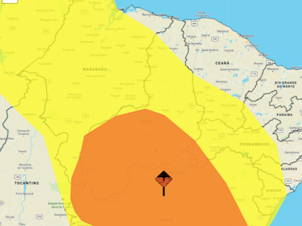 O Instituto Nacional de Meteorologia (Inmet) colocou todo o estado do Piauí em alerta amarelo e laranja para chuvas intensas. De acordo com o alerta, pode chover entre 20 a 30 mm/h ou até 50 mm/dia e ventos intensos (40-60 km/h). Ainda existe baixo risco de corte de energia elétrica, queda de galhos de árvores, alagamentos e de descargas elétricas.