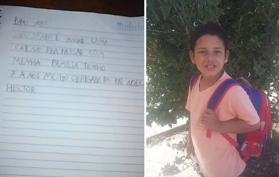 Com a chegada do Natal, as crianças já se preparam para escrever suas cartinhas para o Papai Noel. Carrinhos, bonecas, bolas... Esses são alguns dos presentes pedidos. No entanto, o pequeno Hector, de 7 anos, decidiu fazer um apelo especial, que reflete a difícil situação que o Brasil está passando: "Papai Noel, meu sonho é ganhar uma carne para passar com a minha família, tenho 7 anos, muito obrigado Papai Noel", pediu o menino.