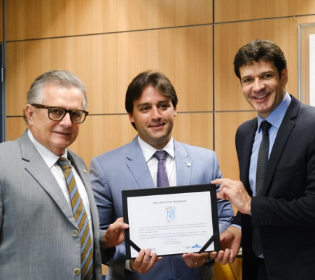 Ministro do Turismo, Marcelo Álvaro Antônio, entrega selo para secretário de Turismo do Piauí, Flávio Junior. | Foto: Roberto Castro/MTur