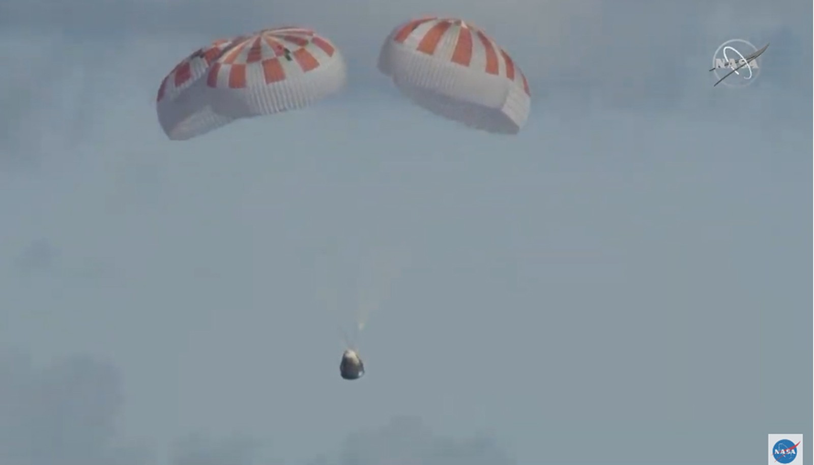 É a primeira vez em quase 50 anos que uma espaçonave faz uma aterrissagem no mar desde o retorno da Apollo 9 em 13 de março de 1969, a última nave espacial tripulada a retornar no mar.