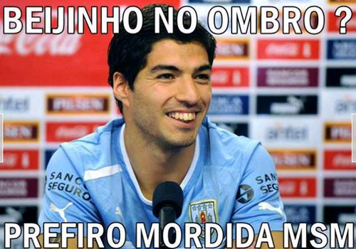 Em um lance inusitado, no jogo em que o Uruguai venceu e eliminou a Itália da Copa, o atacante Suárez deu uma mordida no defensor italiano Chiellini.