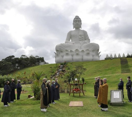 "Uma estátua com alma". Essas foram as palavras do abade Daiju Bitti para definir a cerimônia de "abertura dos olhos" do Buda situado no Mosteiro Zen Morro da Vargem, às margens da BR-101 Norte, em Ibiraçu.