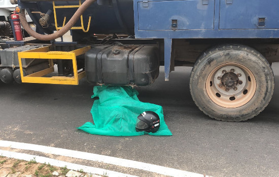 O motociclista Francisco Leonardo do Nascimento, de 29 anos, morreu ainda no local e o garupa Marcos Aurélio de Oliveira Costa, de 46 anos, ficou gravemente ferido, após o piloto perder o controle da moto e os dois serem atropelados por um caminhão.