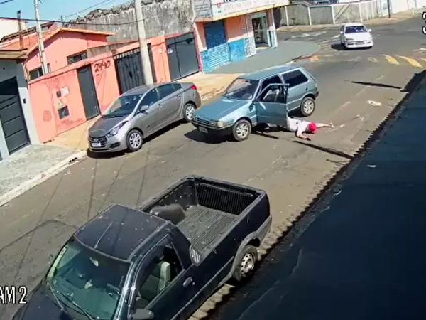 Um motorista caiu do próprio carro enquanto dirigia em uma rua de Franca, no interior de São Paulo. O acidente, que aconteceu no sábado (30), foi flagrado por câmeras de segurança das casas ao redor. O vídeo mostra o momento que o homem estava fazendo um curva, passa por uma lombada e em seguida a porta do veículo abre. O motorista e um objeto, que parece ser uma lata de bebida, caem no asfalto.
