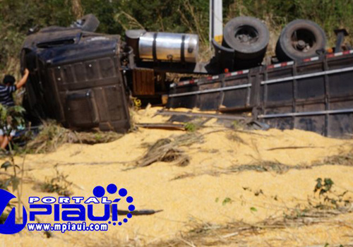 Uma carreta de Placa IOD ? 4096 da cidade de Ibiraiaras, município do Estado do Rio Grande do Sul, com uma carga de milho tombou na BR-343 próximo a São Pedro do Piauí.