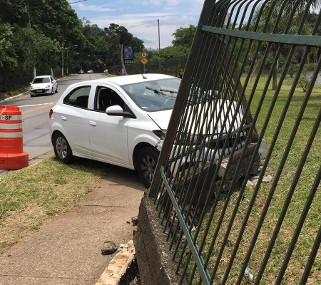Segundo a polícia, o condutor do veículo é um motorista de aplicativos, que dormiu ao volante e perdeu o controle, por volta das 10h30. O carro subiu na calçada e parou no portão.