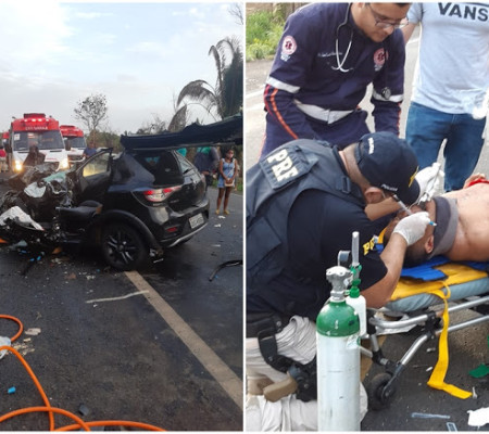 Duas pessoas ficaram feridas em um grave acidente, do tipo colisão frontal, envolvendo dois veículos, nas primeiras horas da madrugada dessa segunda-feira (21), no km 475, da BR-316, no município de Codó. Um médico da PRF fez entubação em uma das vítimas. O passageiro do veículo Renault Sandero teve lesões leves e foi socorrido pelo SAMU sem gravidade. O condutor ficou duas horas e meia preso nas ferragens do veículo.