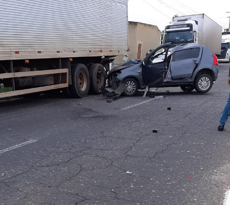 Na madrugada desta segunda-feira, 23 de novembro, um grave acidente foi registrado na Avenida Joaquim Nelson, na zona Sudeste de Teresina. O motorista de um veículo modelo Sandero identificado como Wallisson, de 29 anos, ficou gravemente ferido após perder o controle do carro e bater na traseira de um caminhão na frente do Centro de Distribuição do Grupo Mateus.
