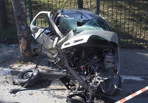 O motor do carro chegou a se soltar do chassi devido à violência da batida. O condutor morreu no local. Ninguém mais se feriu.