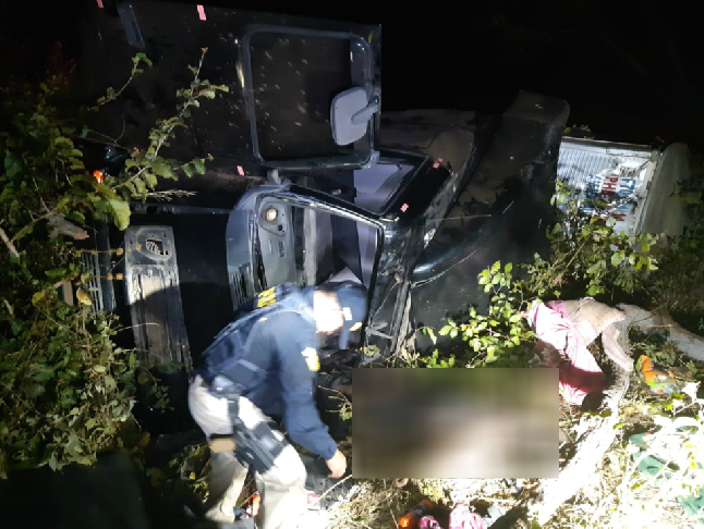 O acidente do tipo saída de pista seguido de colisão com objeto fixo (árvores) envolveu o veículo de carga VOLVO/FH 440 6X2T. O condutor do veículo um homem de 30 anos não resistiu aos ferimentos e veio a óbito.