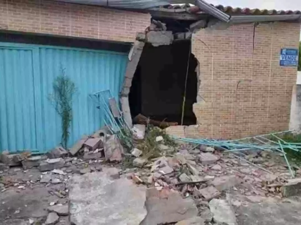 O veículo, pertencente à empresa São João, bateu de frente na residência e derrubou parte de um muro. Vizinhos ficaram preocupados com possíveis furtos, já que o dono do imóvel não mora no local há pelo menos três meses.