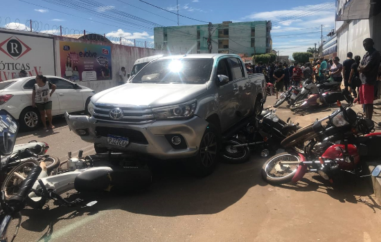 Após a batida, o motorista perdeu o controle da Hilux que colidiu contra um Celta de cor vermelha que estava estacionado, assim como nas motos que também estavam estacionadas. O condutor da Hilux acionou a seguradora e garantiu que nenhum dos proprietários serão prejudicados.