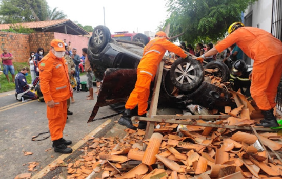 Um homem não identificado teve convulsões enquanto dirigia e capotou o veículo atingindo parte de uma residência, na tarde de terça-feira (11), em Parnaíba, litoral do Piauí.