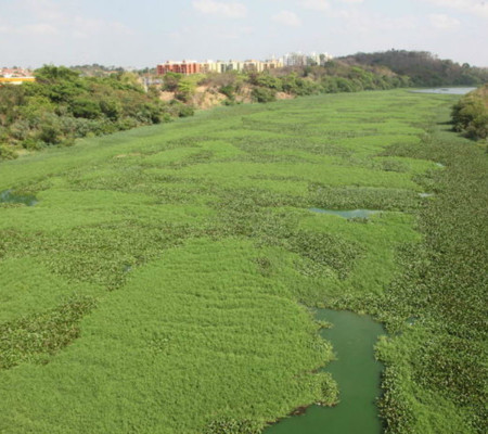 Os resíduos gerados pela poluição resultam no surgimento de aguapés, que são plantas com capacidade de retirar toxinas da água, no entanto, se proliferam desenfreadamente formando um tapete verde sobre o rio, impedindo a pesca, a navegação, além de causar danos à fauna aquática.