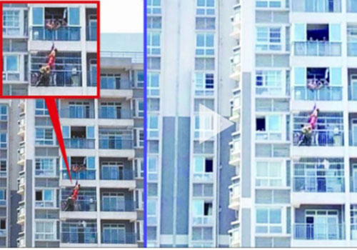 A ação rápida de um vizinho de baixo, chamado Hsu, salvou a vida de uma mulher chinesa que tentava cometer um suicídio ao pular do 12º andar onde morava, na província de Sichuan.