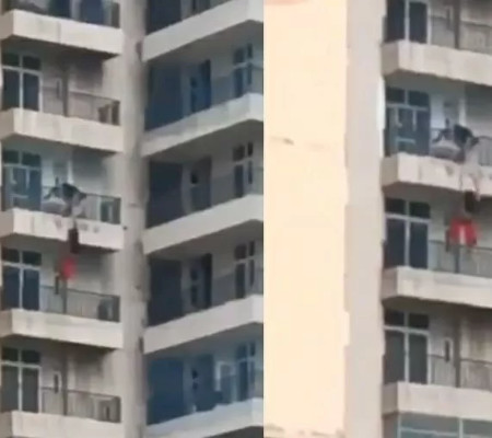 Um vídeo divulgado nas redes sociais mostra a mulher pendurada na varanda de um apartamento e um homem que parece tentar puxá-la. De acordo com o Zee News, a dupla que protagoniza o vídeo é um casal.