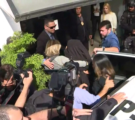 Najila chegou à delegacia pouco antes do meio-dia com seus advogados e acompanhada da amiga Rosana, que também foi ouvida porque estava com a modelo quando o boletim de ocorrência foi registrado. Cercada pela imprensa, Najila entrou na delegacia com a cabeça coberta por um casaco preto.