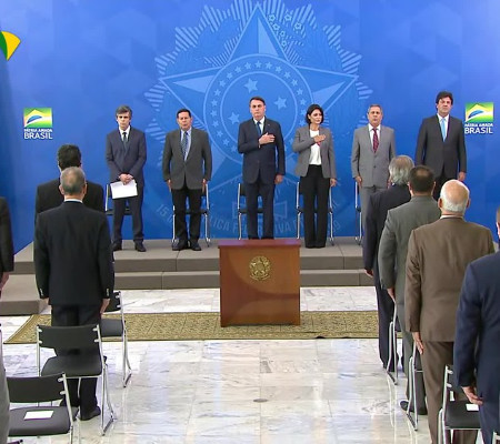 Após Teich, foi a vez de Bolsonaro discursar. O presidente afirmou que corre “risco” ao defender a retomada do comércio no país, porém acredita que essa é a medida correta para lidar com o combate ao coronavírus e ao desemprego.