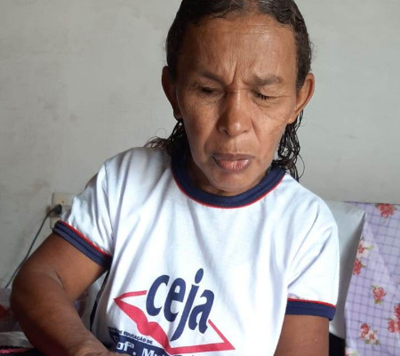 O significado do seu nome já diz muito: alguém que não admite superficialidade e covardia. Muito produtiva e eficiente, faz de sua bandeira a prudência e a disciplina. Nascida em Açude Novo, interior do município de Cocal de Telha, Maria do Desterro dos Santos, 63 anos, deficiente visual desde um ano e três meses de idade, aluna do Centro Educacional de Jovens e Adultos (Ceja) Professora Mulata Lima, da cidade de Campo Maior, não mede esforços para continuar estudando neste momento de pandemia.