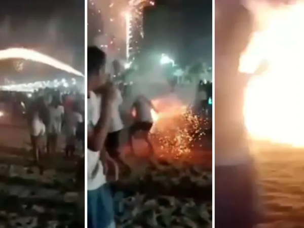 Na filmagem, feita para registrar o Ano Novo, é possível ouvir um estouro e, na sequência, a explosão de faíscas causadas pelos fogos presos na mulher. Além da PM, o Samu também atendeu o caso. De acordo com a Prefeitura de Praia Grande, o serviço foi acionado para socorrer uma vítima de queimadura e explosão ocasionada por fogos de artifícios. Os profissionais identificaram que a mulher havia sido atingida pelo artefato na região do tórax. Ela teve a morte constatada no local.