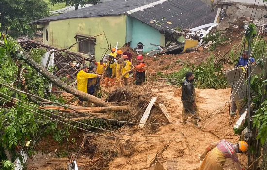 Em Angra dos Reis, também na Costa Verde, são 5 mortos e 6 pessoas estão desaparecidas depois que um deslizamento de terra atingiu quatro casas em Monsuaba, bairro litorâneo da cidade, na madrugada deste sábado.