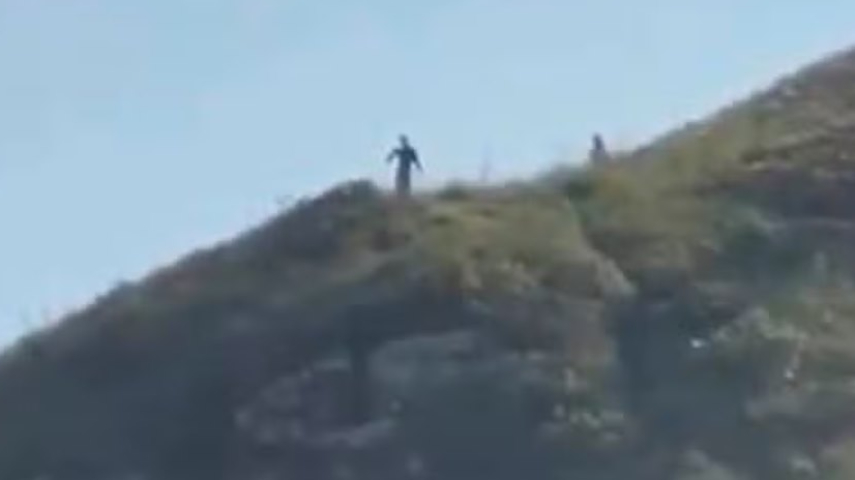 No vídeo, uma família observa duas grandes criaturas no morro, com uma delas descendo em direção à faixa de areia. As testemunhas ficam perplexas com a altura da figura e a rapidez com que ela percorre o terreno íngreme.