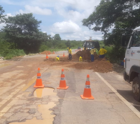 A correção definitiva da rodovia está sendo realizada. Durante o procedimento haverá restrição parcial do fluxo de veículo havendo trânsito em apenas uma das faixas.