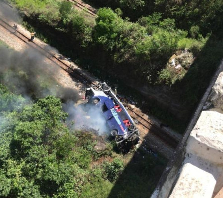 Um ônibus de viagem caiu hoje de um viaduto conhecido como "Ponte Torta", na BR-381, entre João Monlevade e Bela Vista de Minas, no interior de Minas Gerais, e deixou 17 mortos e 277 feridos, de acordo com o Corpo de Bombeiros de MG e a PRF-MG (Polícia Rodoviária Federal de Minas Gerais). As informações são do site do UOL.