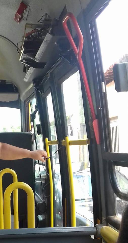 A porta inclui outros transtornos para estudantes com algum tipo de necessidade especial. “A porta quebrada atrapalha muito na hora de entrar no ônibus com a cadeira de rodas. A monitora precisa abrir a porta, que é fechada com arame. É um risco muito grande porque a porta pode abrir e machucar os estudantes. A monitora tem que ficar segurando a porta a viagem inteira. Falta uma peça, não justifica”, acrescenta Eliane.