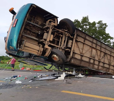 O ônibus, da empresa RJG Turismo, saiu do estado do Piauí e tinha como destino a cidade de São Paulo. Perto de Vila Boa (GO), o veículo tombou na pista e deixou o trecho totalmente interditado.