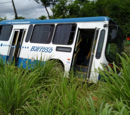 Um ônibus da empresa Barroso que faz linha entre os municípios de Altos e Teresina, desceu um barranco nas proximidades da Expoapi, na rodovia BR-343, na tarde desta sexta-feira (28/02), após o motorista do veículo tentar evitar uma colisão traseira e quase colidir fontalmente com outro transporte coletivo que vinha no sentido contrário.