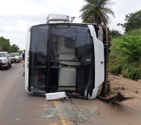 Um ônibus de turismo que vinha de Goiânia a São Luís tombou na BR 010, em Imperatriz, e deixou oito pessoas feridas.
