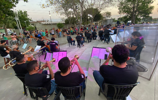 Com um belo pôr do sol, os moradores do bairro Mocambinho, que fica localizado na zona Norte de Teresina, receberam, no final da tarde de ontem (13), o Projeto Segunda no Parque, que é desenvolvido pela Orquestra Sinfônica de Teresina e que visa levar cultura para os frequentadores dos parques da capital. Realizado quinzenalmente, o projeto já percorreu diversos parques da cidade e por onde passa ganha aplausos da população, que neste momento pandêmico, vem procurando aliviar a mente com belas canções instrumentais.