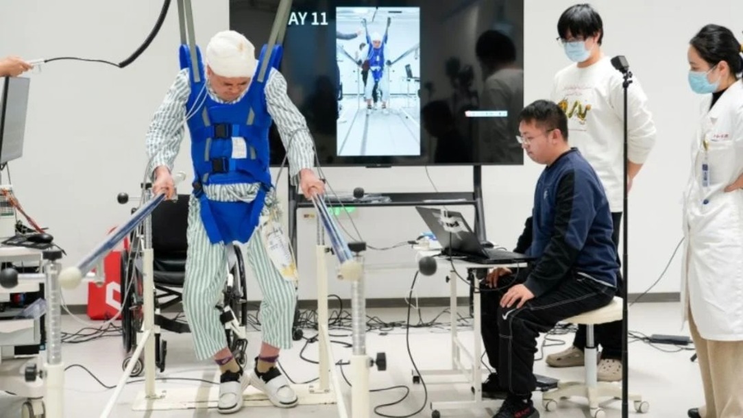 Quatro pacientes com paralisia passaram por um procedimento cirúrgico inovador realizado na China, considerado pioneiro no mundo. A técnica envolveu a implantação de eletrodos no cérebro e na medula espinhal para criar uma espécie de "bypass nervoso", conectando as duas partes do corpo. O objetivo é permitir que esses indivíduos possam voltar a caminhar de forma independente.
