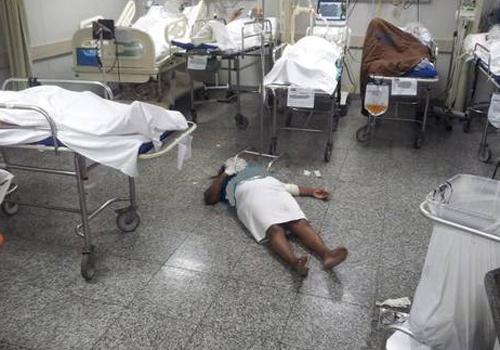 De acordo com um profissional de saúde, que pediu para não ser identificado, a sala vermelha da emergência ? que recebe pessoas graves ? tem capacidade para atender de 10 a 12 pacientes. No entanto, não é raro as vezes que o lugar abriga de 25 a 30 doentes. Segundo ele, os casos de pacientes deitados no chão são de pessoas que sofreram uma parada cardíaca ou estavam com a pressão muito baixa. Elas precisavam ser atendidas deitadas, mas não havia leitos disponíveis. Segundo os médicos, a emergência ficou ainda mais sobrecarregada após a desativação de 12 leitos de clínica médica pela falta de médicos, enfermeiros e auxiliares de enfermagem.