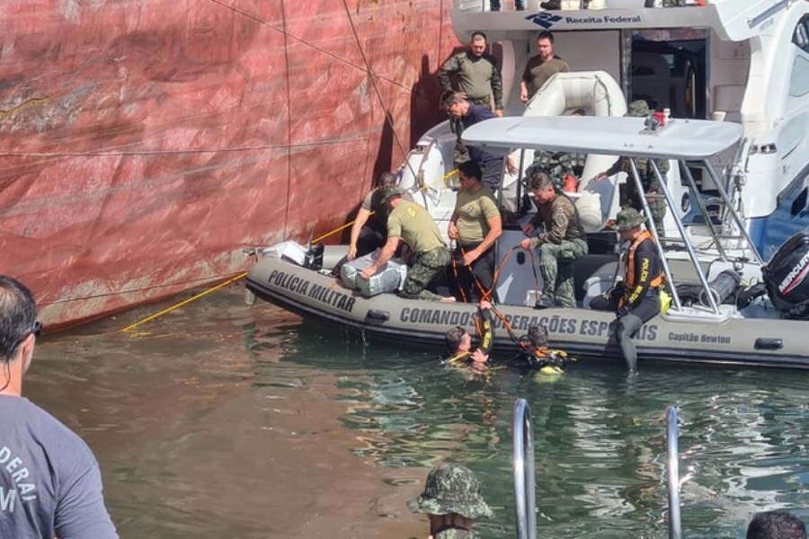 O uso de mergulhadores profissionais pelo tráfico para esconder drogas em navios está se espalhando pelos portos brasileiros. Em 2019, foram apreendidos 360 quilos de cocaína colocados em embarcações por meio deste procedimento. No ano passado, esse número saltou para quase três toneladas.