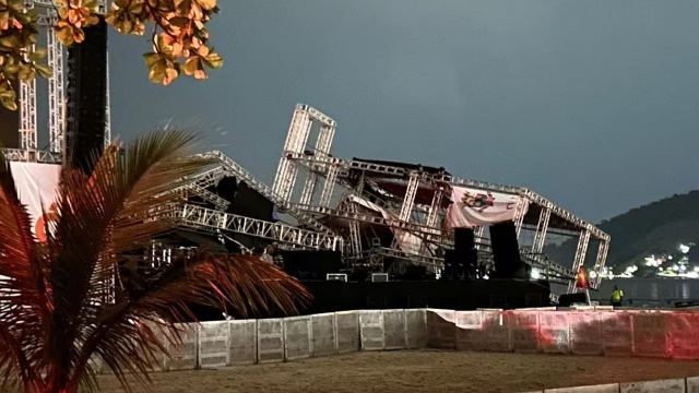 "Condições climáticas adversas e atípicas, incluindo fortíssimos ventos e tempestade de raios, provocaram o colapso da estrutura do palco montado na Praia de Icaraí", informou a prefeitura, em publicação nas redes sociais. De acordo com informações da prefeitura, não havia pessoas no local no momento em que a estrutura cedeu. O evento faz parte das celebrações pelos 450 anos de Niterói.