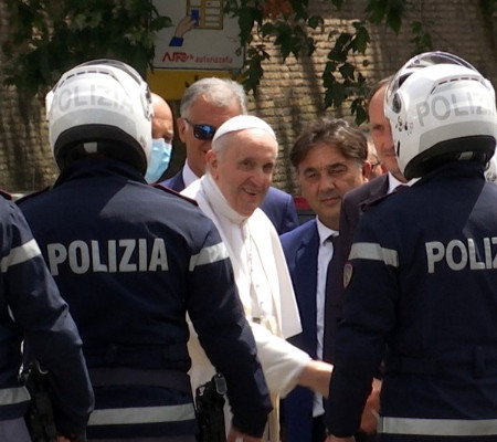 Imagens mostram o carro que transporatava o papa parando antes de entrar no Vaticano. Francisco então desce, cumprimenta policiais e depois volta para o veículo, que segue seu caminho.