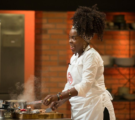 Aprovada na primeira etapa, preparou uma bisteca suína com ingredientes da cesta básica, mas o seu purê de ervilhas não agradou o chef Erick Jacquin.