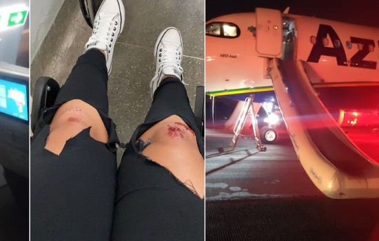 "As comissárias começaram a falar que ia explodir o avião, que era para evacuar o avião e foi aquele desespero. Ninguém conseguia abrir porta. Eu não sei quantas pessoas já tinham saído na minha frente, mas consegui sair, graças a Deus, sem nenhum ferimento. Saí pela pelo escorregador (inflável). A gente via que tinha muita gente machucada, porque quando descia no escorregador, a turbina estava ligada, então ventava e derrubava as pessoas", relata.