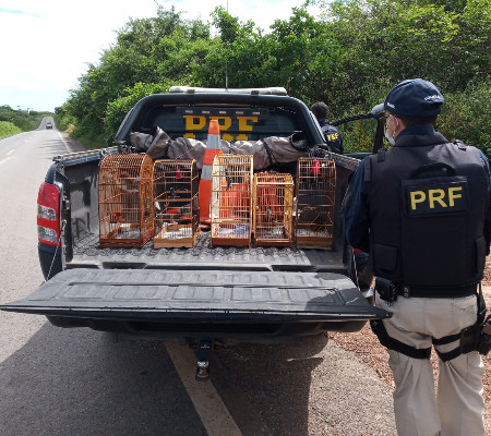 A Polícia Rodoviária Federal (PRF) realizou a apreensão de 05 pássaros silvestres, acomodados em gaiolas, na manhã deste domingo, 10 de maio, na BR 402, em Parnaíba. Ao abordarem um veículo, modelo Fiat/Uno, os agentes perceberam o crime ambiental. O carro era conduzido por um homem de 28 anos e que estava acompanhado de um homem de 27 anos. Os suspeitos informaram aos policiais que eram donos dos pássaros.