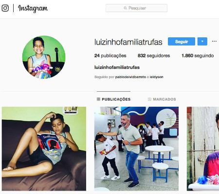 O novo perfil da família no Instagram é: @luizinhofamiliatrufas
