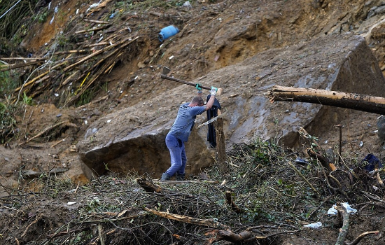 Com o tempo instável em Petrópolis, o coronel Leandro Monteiro, secretário estadual de Defesa Civil e comandante dos bombeiros, explicou que não pode avançar com máquinas pesadas, como tratores, em qualquer lugar.