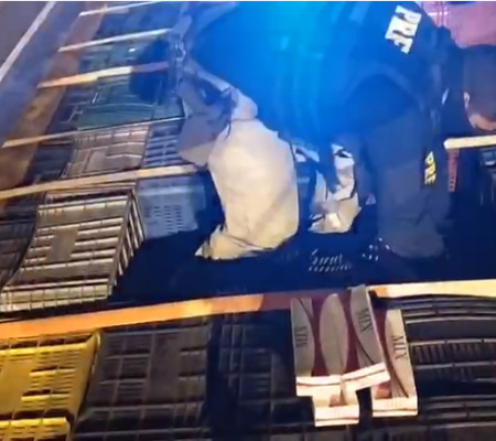 Os policiais estavam realizando policiamento na região, quando avistaram o caminhão M. BENZ/L-1318. Ao dar ordem de parada, o condutor, que não foi possível a sua identificação, empreendeu fuga e conseguiu se evadir do local. Os policiais levaram o veículo para a unidade operacional e, ao fazerem a vistoria no interior do compartimento de carga, os policiais detectaram grande quantidade de cigarros contrabandeados. Foram contabilizados aproximadamente 100.000 maços de cigarros avaliados em meio milhão de reais. Considerada a maior apreensão de cigarros do ano, a carga estava escondida em meio a caixas de plástico para transporte de verduras.