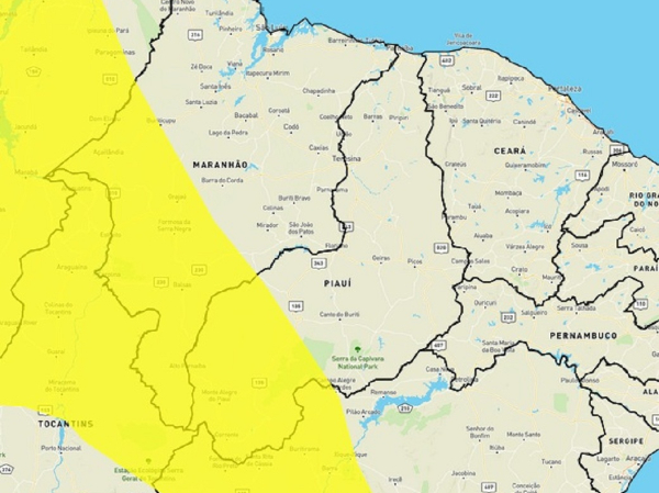 O aviso, que engloba 30 municípios do Piauí, segue até as 10h desta quinta-feira (10) . (veja lista no final da matéria).
