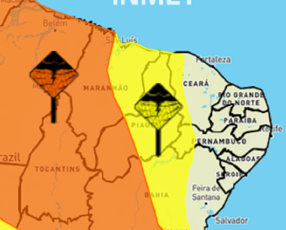 Nas regiões Norte, Centro-Norte e Sudeste, a previsão é de volumes em torno de 20 mm/h, podendo alcançar 50mm em 24 horas. O alerta amarelo (perigo potencial) emitido pelo INMET engloba municípios como Parnaíba, São João do Piauí, Teresina e Picos.