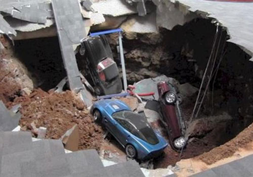 A abertura de uma cratera sob o piso do Museu Nacional do Corvette, em Kentucky, nos Estados Unidos, "engoliu" oito veículos expostos em uma das alas da instalação na quarta-feira. O incidente ocorreu no salão conhecido como Sky Dome, fazendo com que os carros históricos fossem sugados em um buraco de cerca de seis metros de altura. Ninghuém ficou ferido. As informações são da rede CNN.