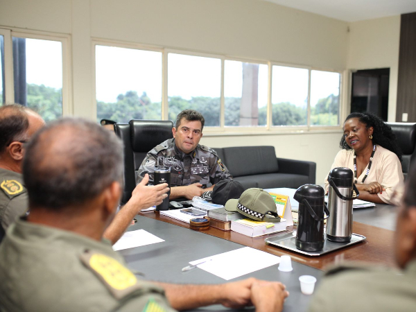 PMPI visa implementar projeto antirracista para policiais militares | Foto: DivulgaçãoA superintendente da promoção da igualdade racial e povos originários da Secretaria de Estado da Assistência Social (SASC), Assunção Aguiar, o Diretor de igualdade social, Professor Bispo, o subcomandante do Centro de Educação Profissional (CEP), Tenente-Coronel Ronald e o diretor da Diretoria de Ensino, Instrução e Pesquisa (DEIP), Coronel Mota estiveram presentes na reunião.